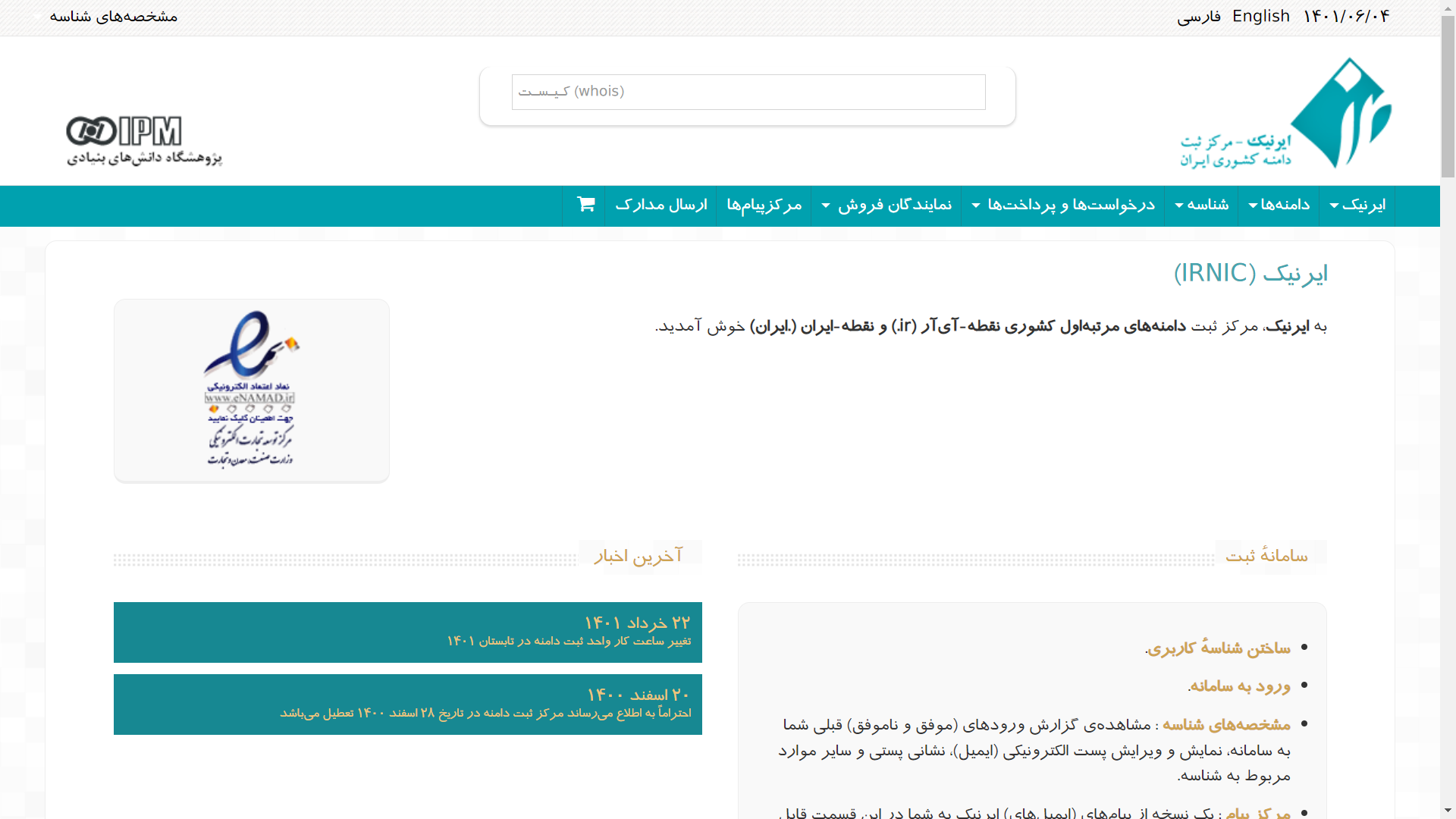 .irはイランのドメインで、レジストリにアクセスすると怪しげなアラビア文字が現れる。