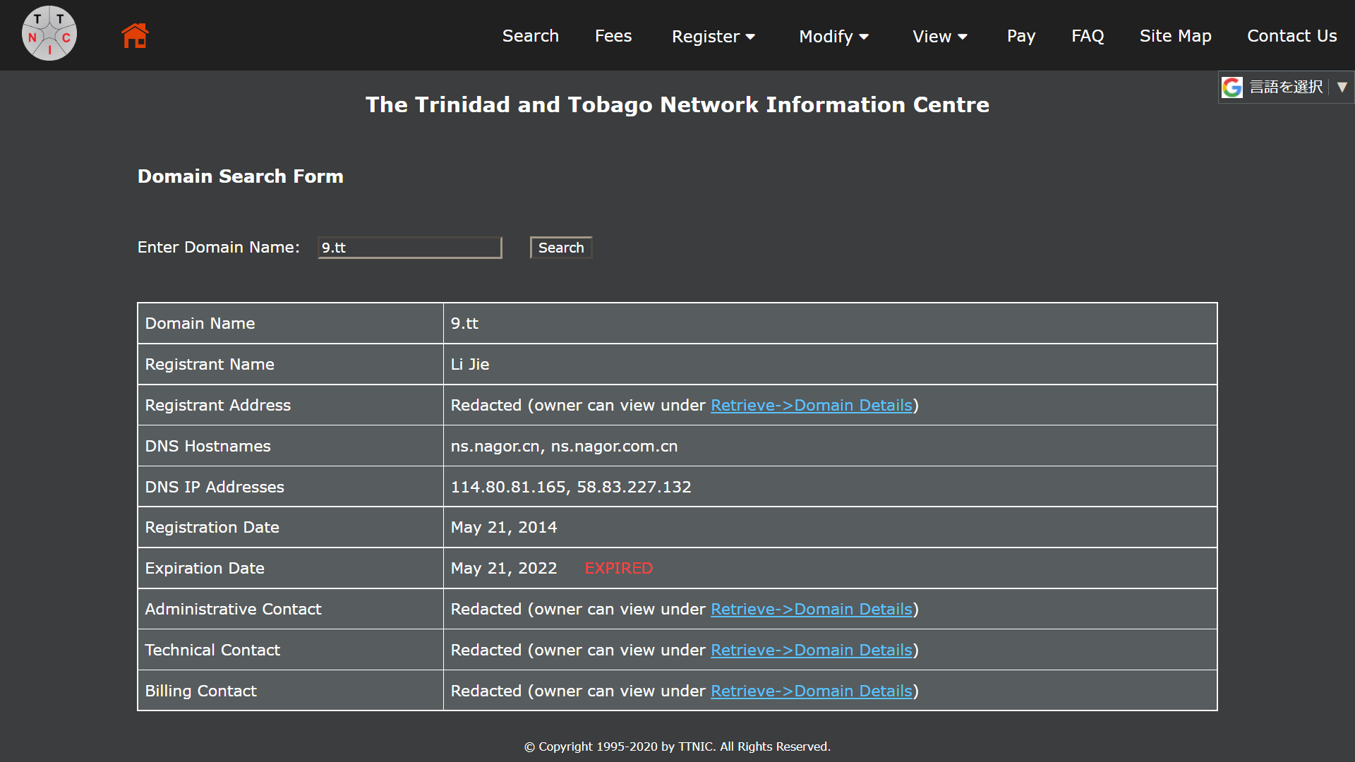 .tt(トリニダード・トバゴ)の数字一文字ドメイン、3.tt~9.ttが期限切れとなり開放されたのを確認した。