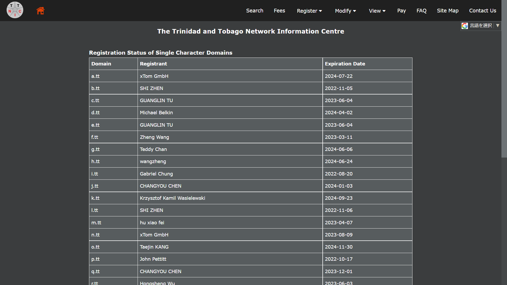 しばらくの間中国人が買い占めていたが、ご存知の通り一文字.ttドメインの登録料が非常に高額(3年登録で4000ドル)であることから、さすがに音を上げたのだろう。