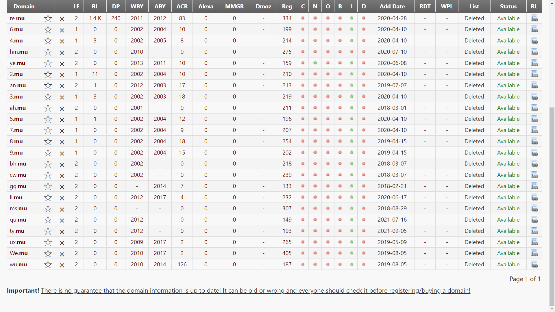 また以前は一文字ドメインの登録を許可していたが途中で登録を抹消、あるいは再登録を受けつけていないレジストリも存在する(